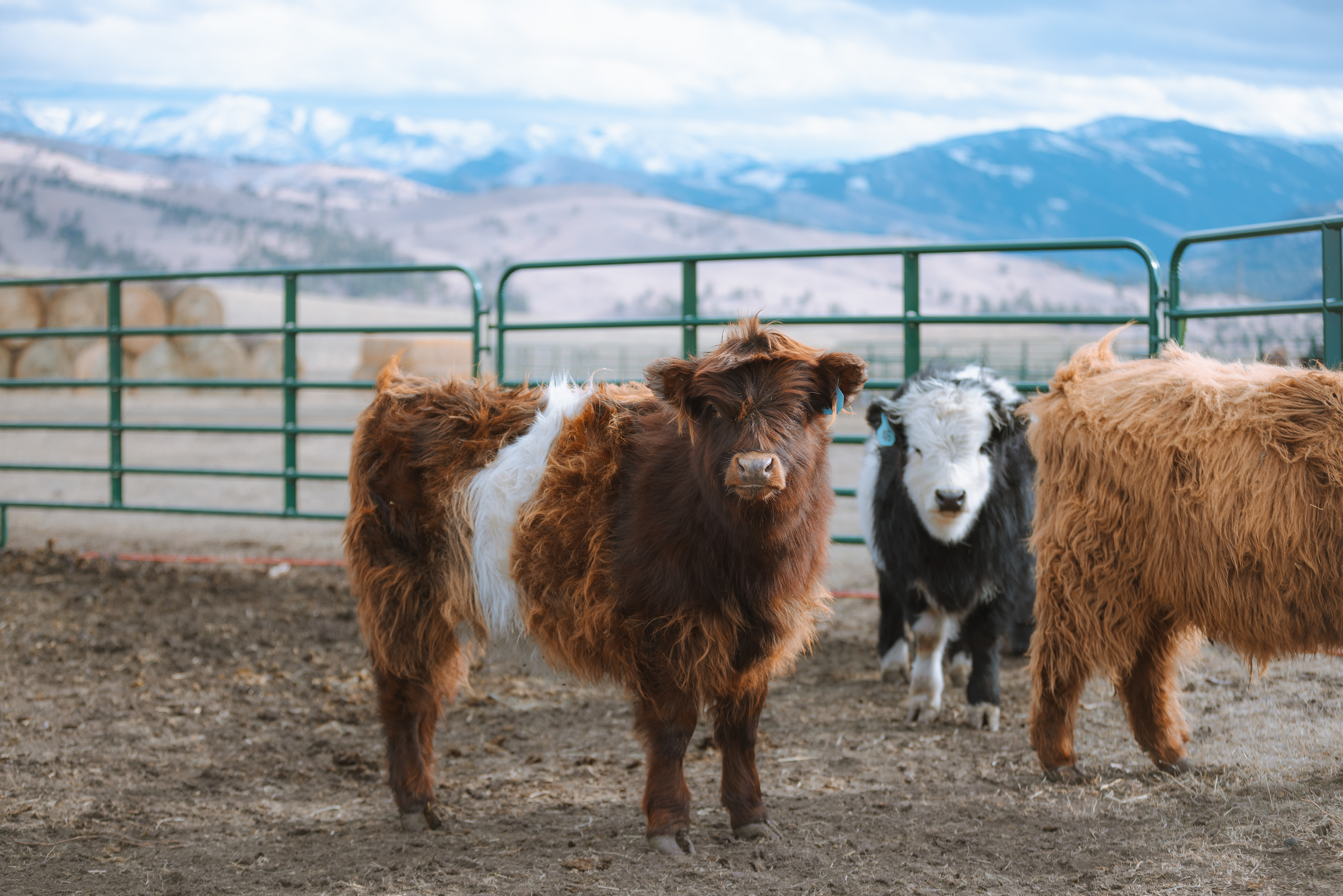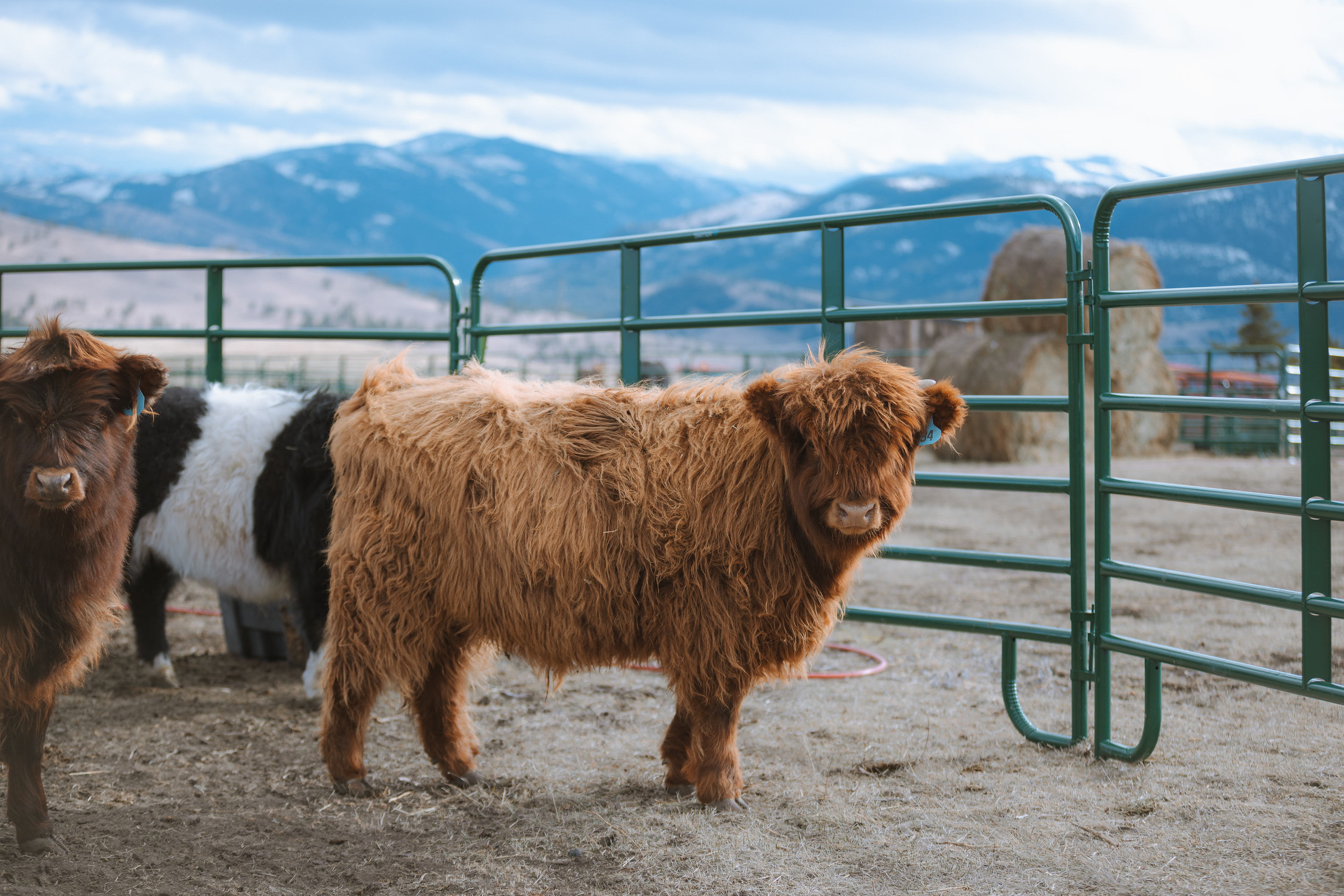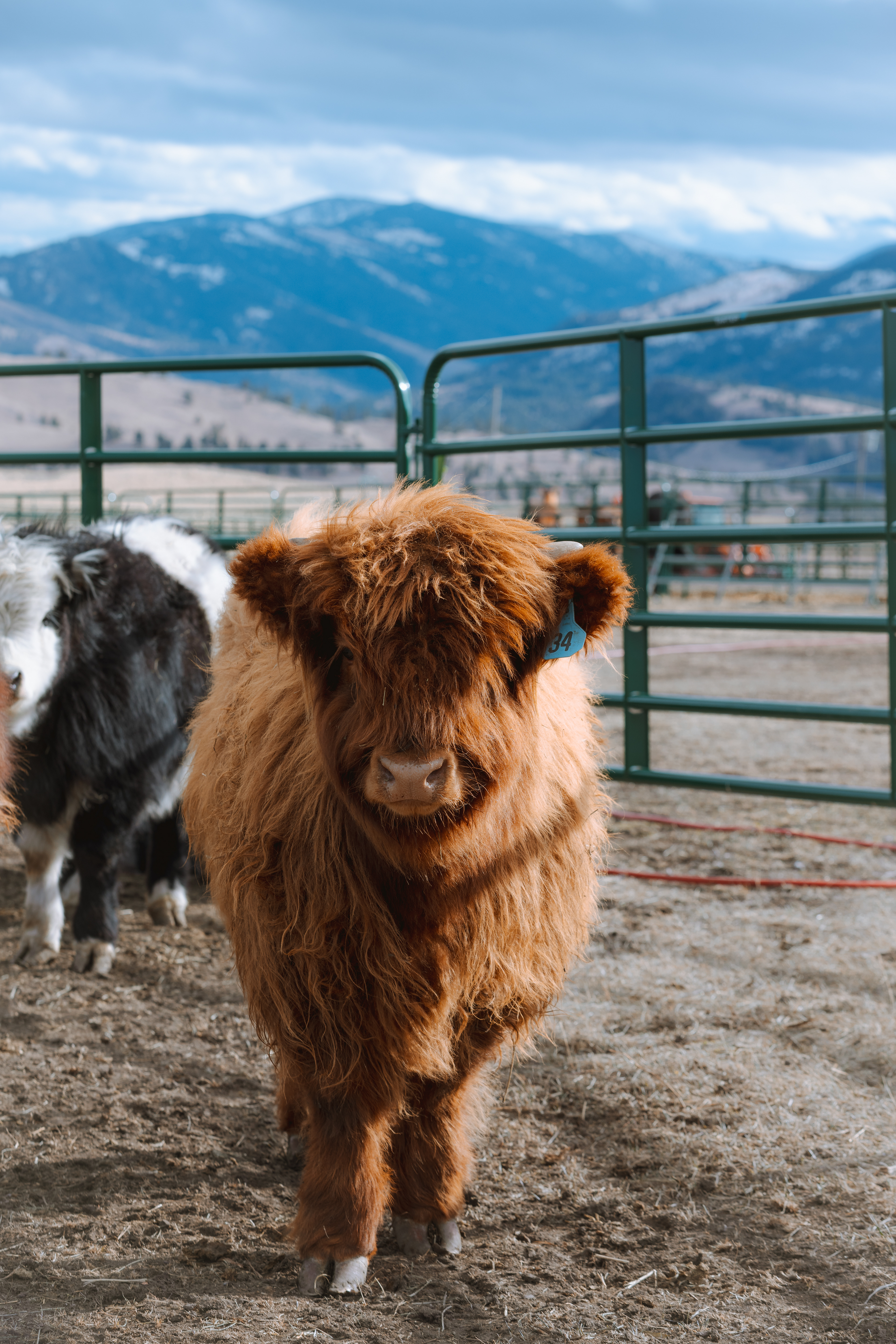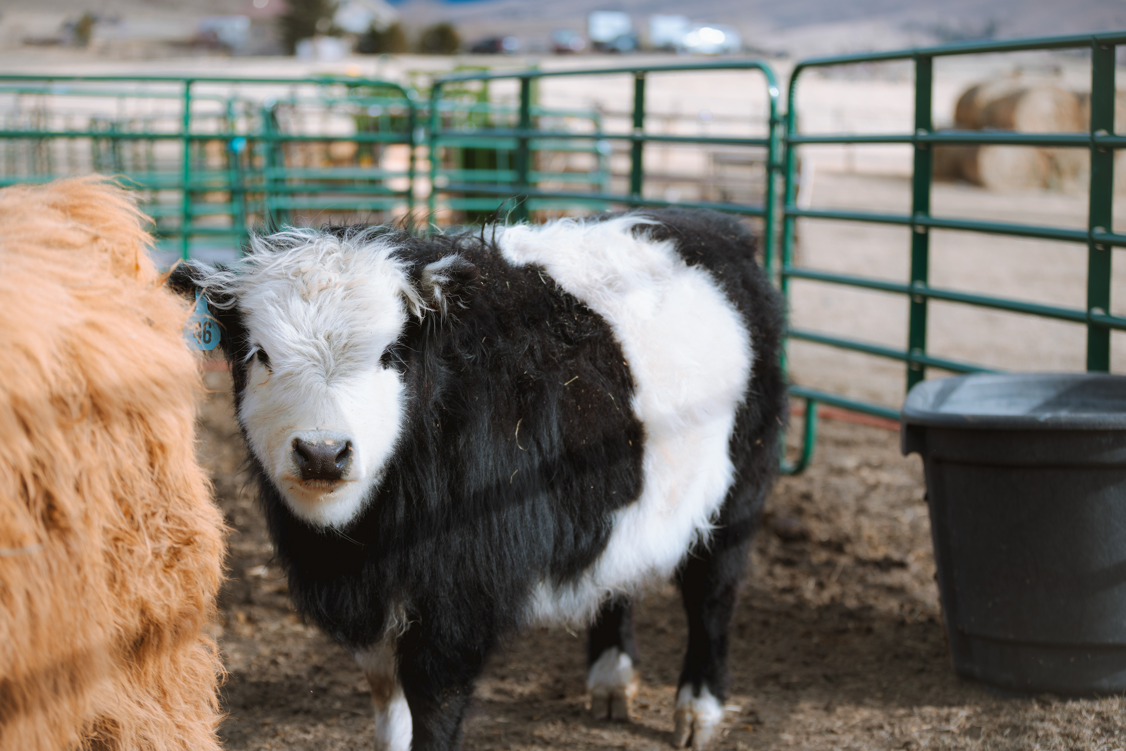 Cookie – Highbelt (Highland x Belted Galloway) black and white heifer calf. Her mom is very small, she will stay smaller framed! She's about 9 months old. $3000